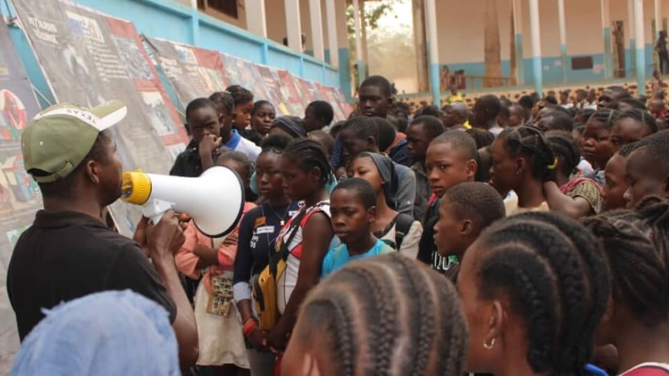 It’s a hot day in late January as the Principal of Lycée Barthélémy Boganda, a school in Bangui, capital of the Central African Republic, addresses 2,000 students about to take part in a peace education workshop with the Aegis Trust.